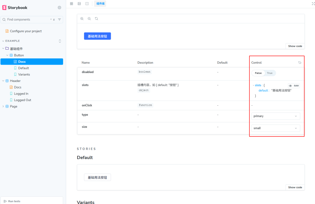 - 可视化展示组件状态:通过 Story 的形式展示组件在不同 Props 或状态下的外观。