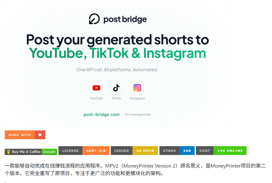 MoneyPrinterV2 没有绕弯,它一上来就告诉你:我就是在自动化“在线赚钱”这件事。