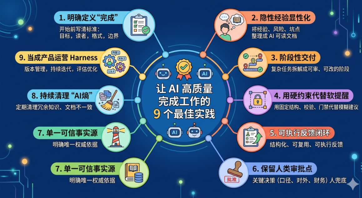 所以,如果你真的想让 AI 高质量完成工作,别再只盯着模型参数和提示词技巧。真正该下功夫的,是你的任务定义是否清晰、知识是否结构化、流程是否可校验、规则是否可执行、反馈是否形成闭环。