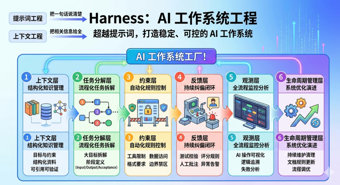 说到底,AI 能不能把工作做好,从来不只是模型的问题,更是你的系统设计能力问题。而 Harness,正是把 AI 从“偶尔好用”带到“稳定交付”的关键分水岭。