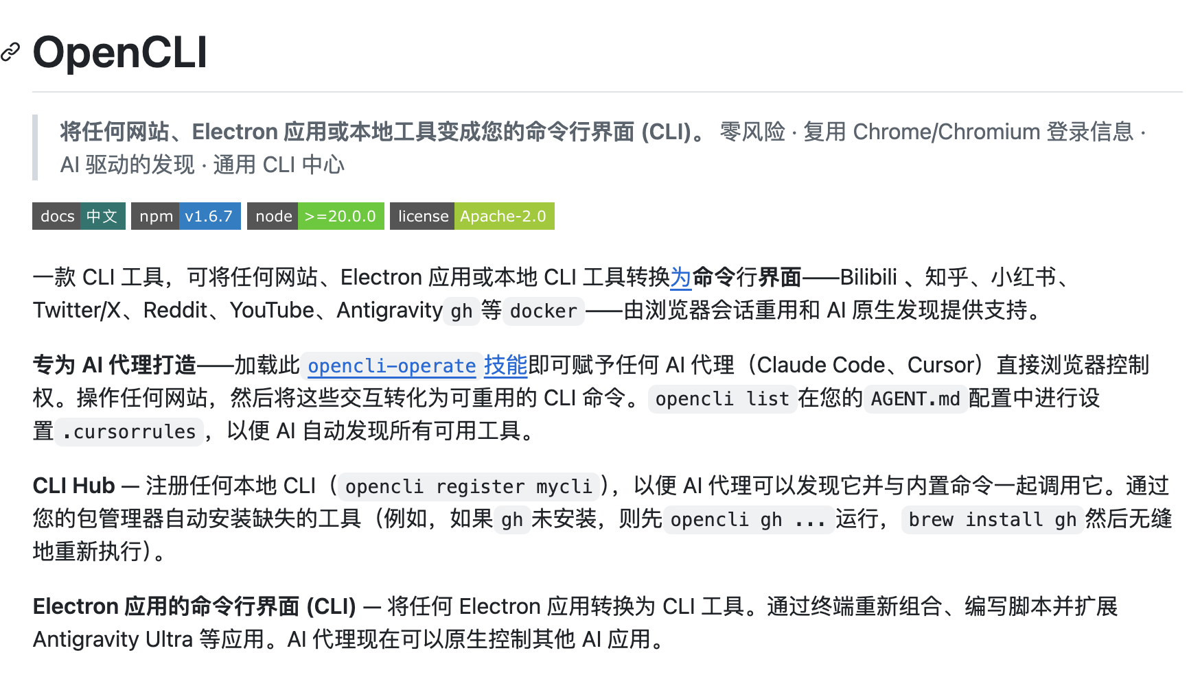 如果你对“能不能脚本化”特别敏感,OpenCLI 会非常有吸引力。